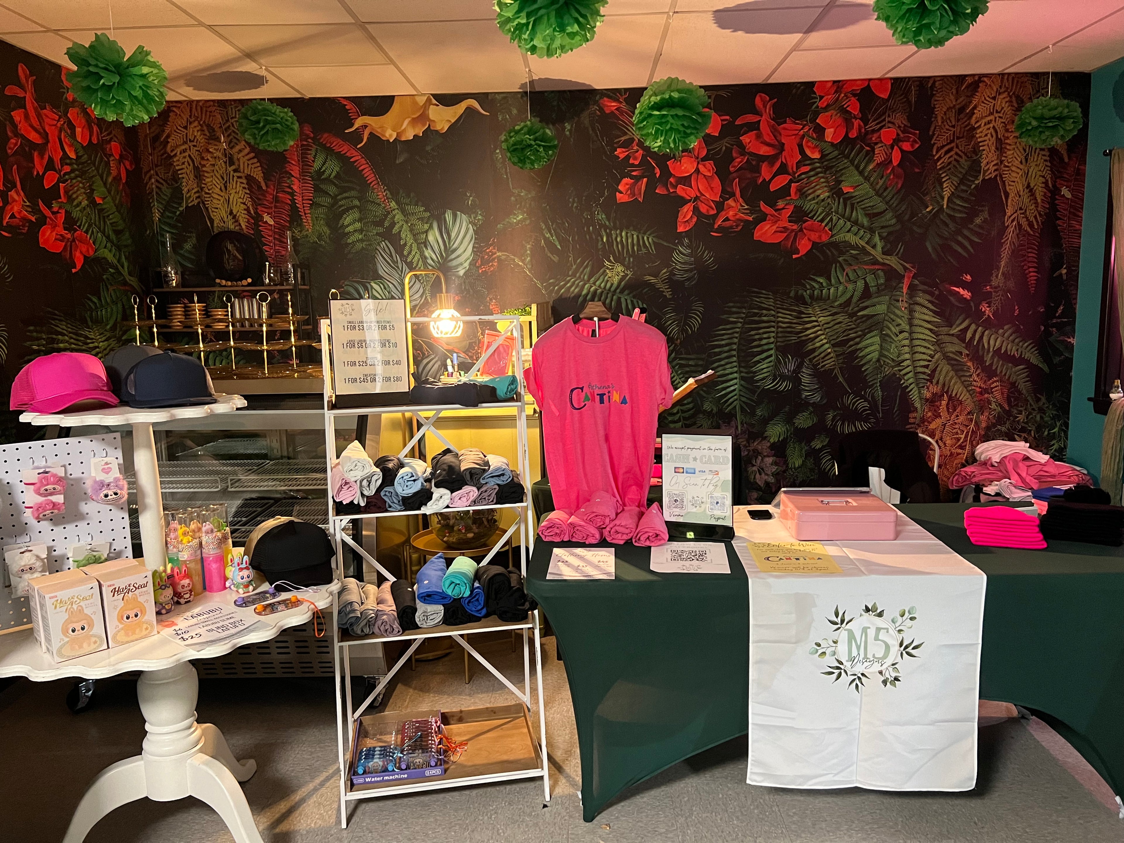 We bring the event to you! With our press on site events, we bring a ton of blank apparel (we have in stock tanktops, tshirts, sweatshirts, etc - or you can request a specific item to offer!), and DTF t-shirt transfers. These are often a design that your organization provides me, or we do offer free design services if you want us to make you a design!